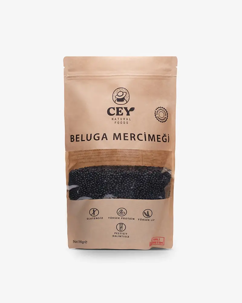 Kendine özgü siyah rengi, küçük ve yuvarlak taneleriyle öne çıkan Beluga Mercimeği (siyah mercimek); lezzetli, doyurucu ve çok yönlü bir bakliyattır. Kendi tarlalarımızda özenle yetiştirilen bu özel mercimek, pişirme sırasında dağılmadan formunu koruması sayesinde özellikle salata, garnitür ve sıcak yemeklerde mükemmel sonuç verir.