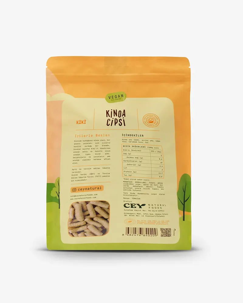 - Yediğini Önemse güvencesiyle sunulan Kinoa Cipsleri, katkı maddesi ve koruyucu içermez. Türkiye’de ilk kez %100 Hindistan cevizi yağı kullanılarak üretilen bu özel cipsi mutlaka deneyin!