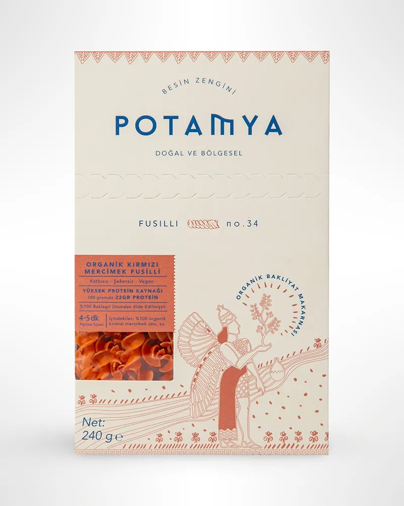 Potamya Organik Kırmızı Mercimek Fusilli, %100 organik kırmızı mercimek unundan üretilen özel bir makarnadır. Üreticiler, bu ürünü yumurta veya herhangi bir hayvansal gıda kullanmadan hazırlar. Böylece vegan beslenmeye uygundur. Glutensiz içeriğiyle, katkısız ve doğal bir alternatif sunar. Ayrıca yüksek protein oranı sayesinde doyurucu bir öğün seçeneği oluşturur.